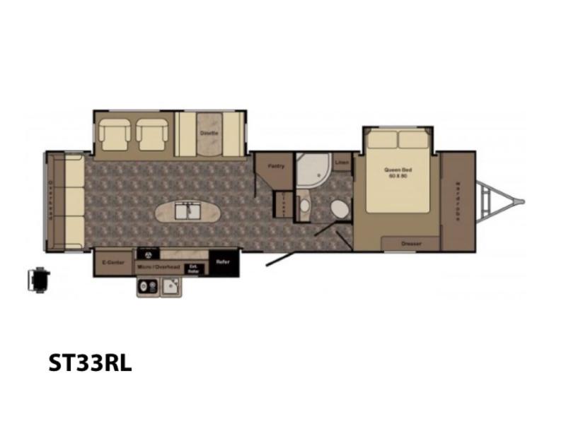 The Sunset Trail Grand Reserve ST33RL travel trailer by CrossRoads RV offers triple slides, a rear living layout, plus more!