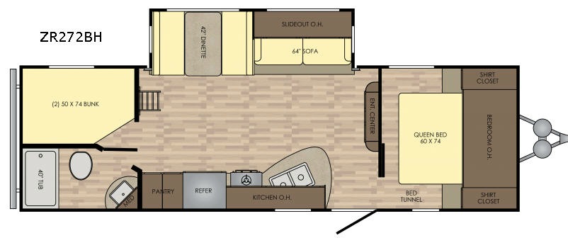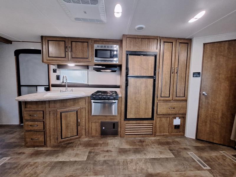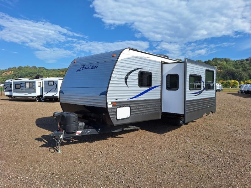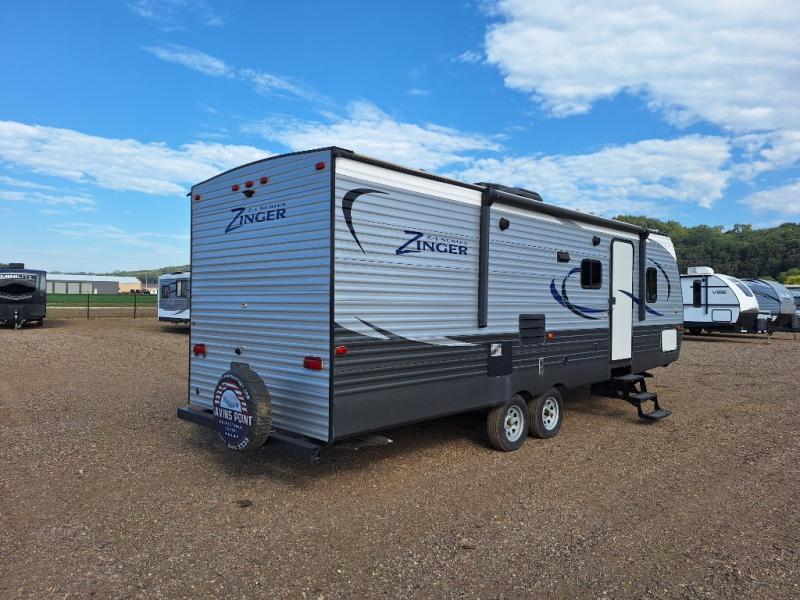 Load up your family and a few extra friends and enjoy your travels in this Zinger Z1 Series travel trailer by Crossroads RV. This model ZR272BH features a rear set of double bed bunks with a ladder, a large slide out for added interior space, and a private front bedroom, plus more!