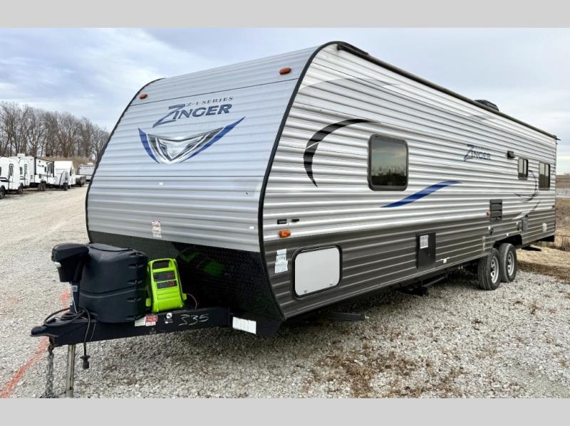 This CrossRoads Zinger Z1 Series model ZR288RR features all of the amenities you need and want while camping, plus a bit of parking space for a few outdoor toys. This toy hauler travel trailer offers a rear ramp door so you can easily load up and head to your favorite outdoor playgrounds!