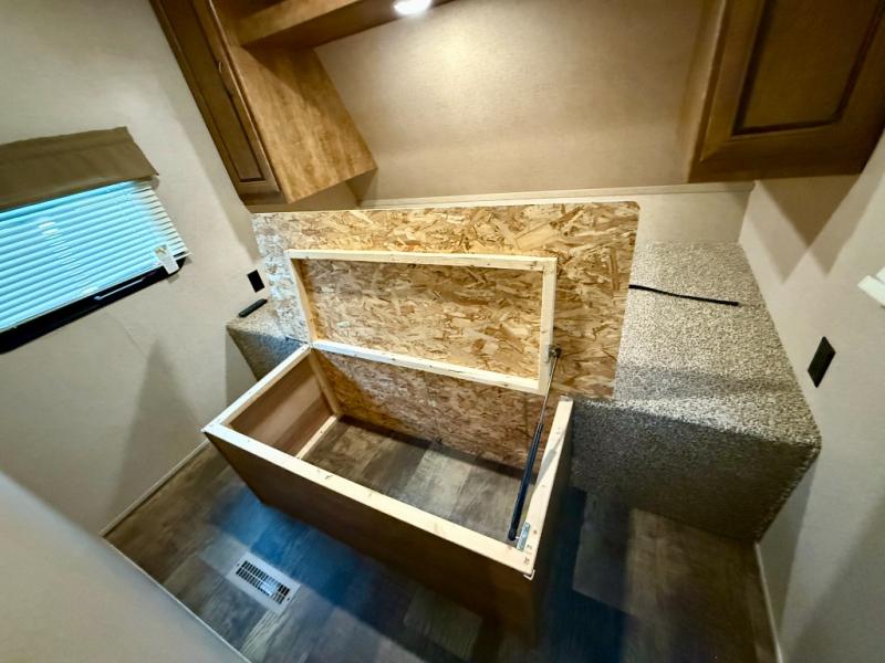 Once you arrive at your destination you can easily unload and enjoy the seating space in the rear with dual facing 72" sofas including storage over the road side sofa which is perfect for your gear. These sofas can easily be turned into added sleeping space when night rolls around creating room enough for a few extra friends.
