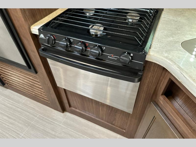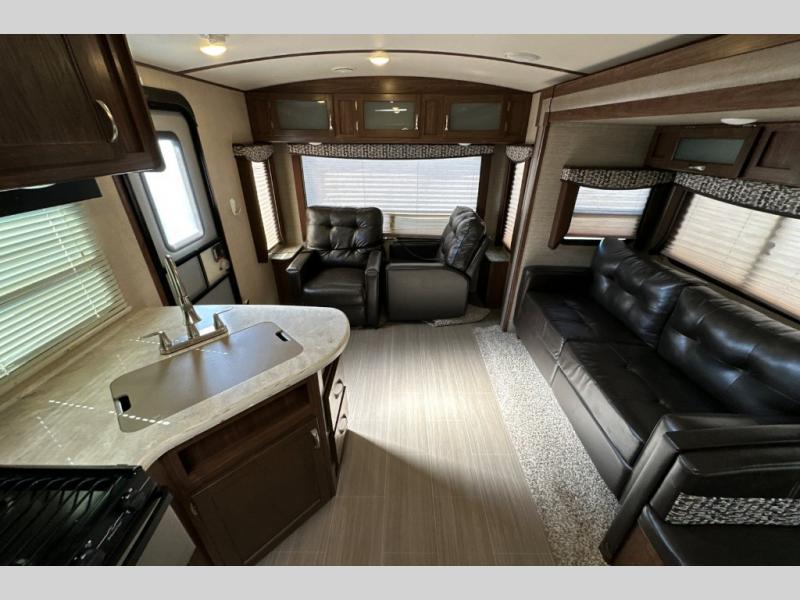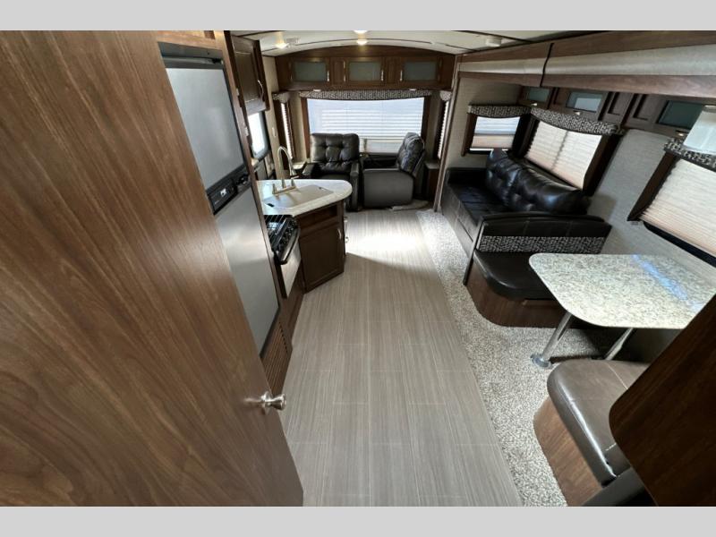 You can enter model 281RLSS through one of two doors. There is a front entry that lead into the master bedroom, or enter closer to the rear of the unit and find yourself in the living area and combined kitchen.