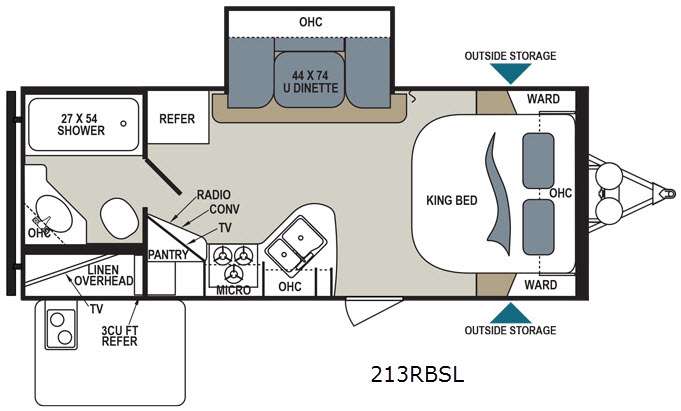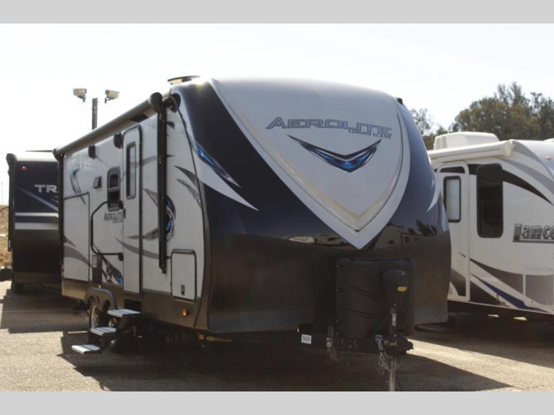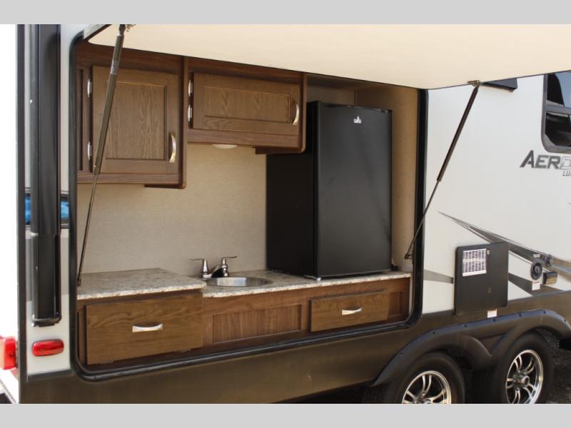 This Dutchmen Aerolite Luxury Class 213RBSL travel trailer features a king size bed, single u-shaped dinette slide for extra living space, an outdoor kitchen and TV, plus more!