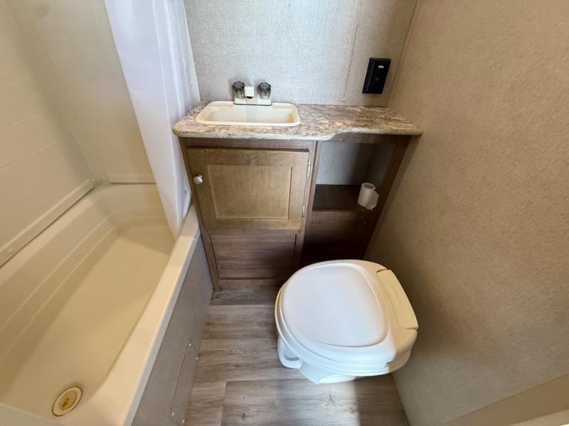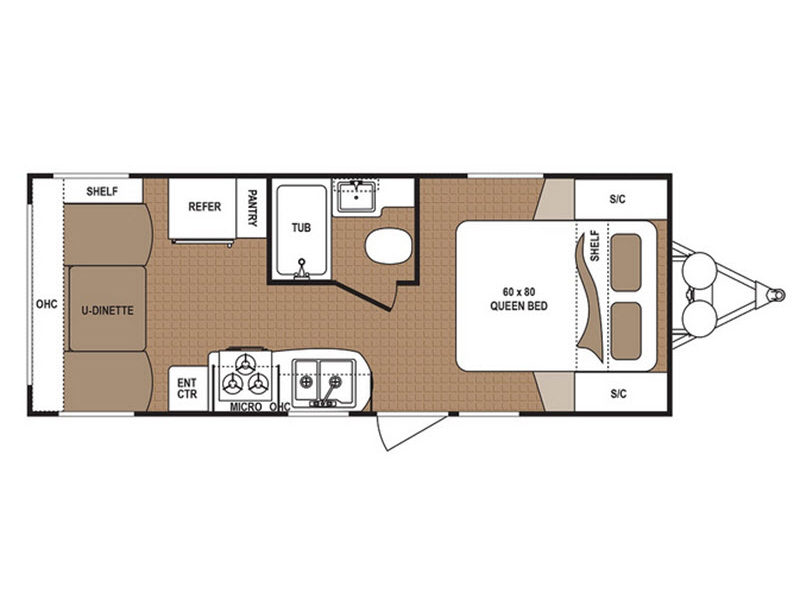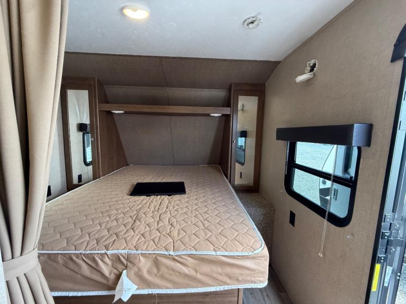Camping can be fun and easy inside this 2050QBWE Aspen Trail by Dutchmen. This travel trailer can easily accommodate four people at night.