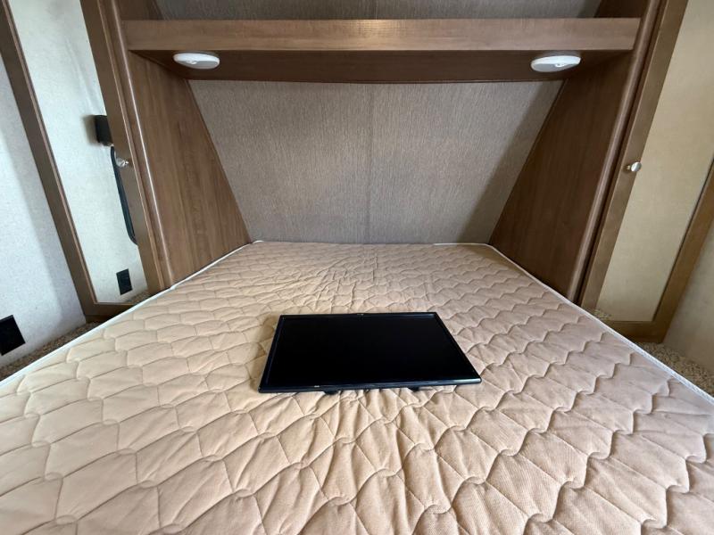 Step inside and find a front queen bed with shirt closets and a shelf to your right.