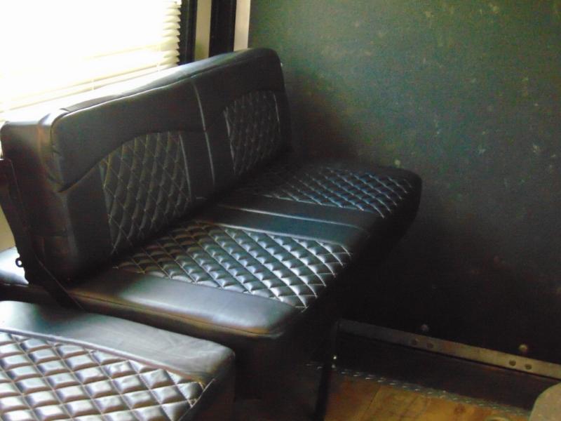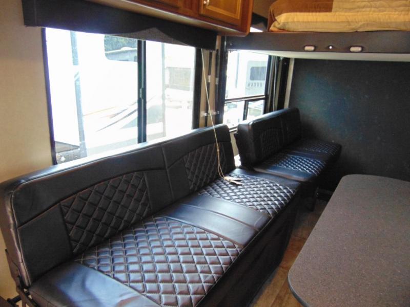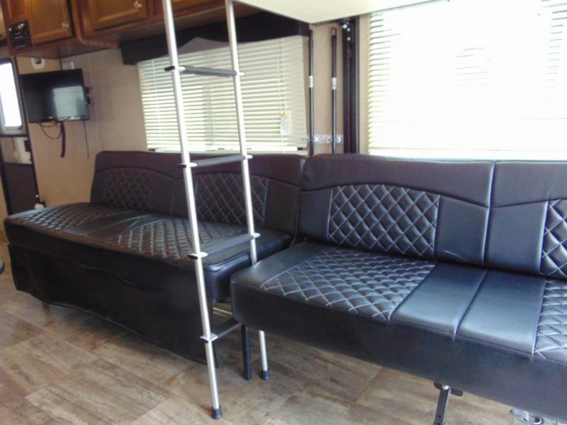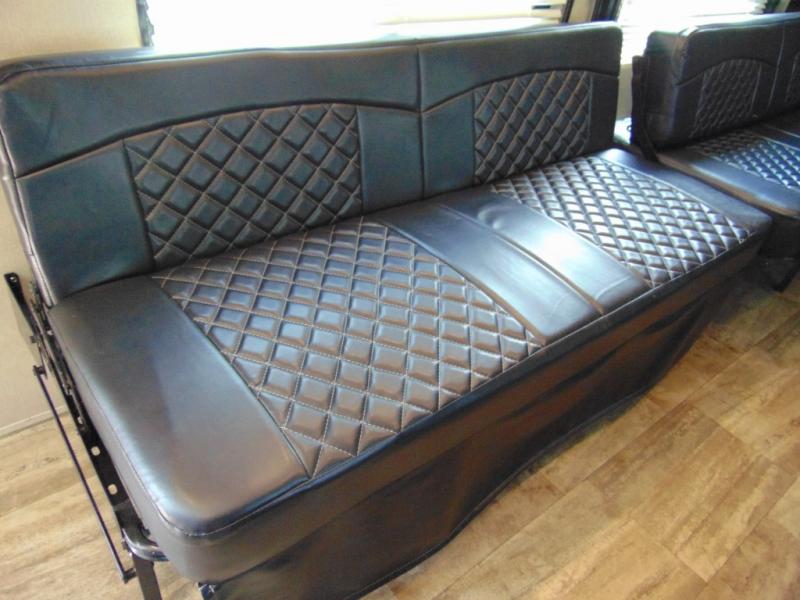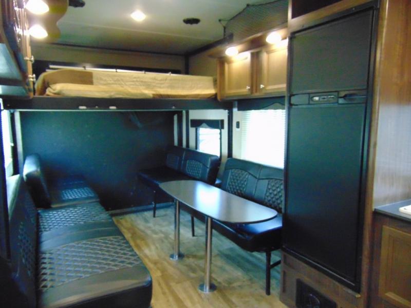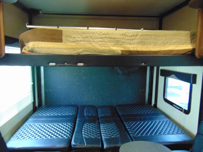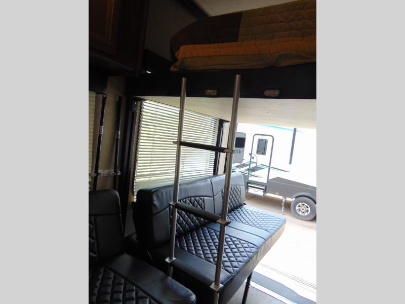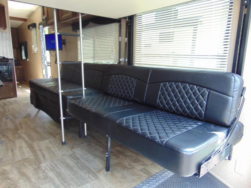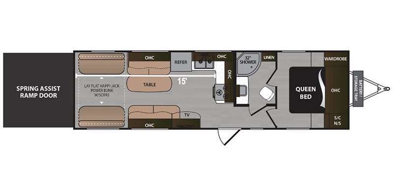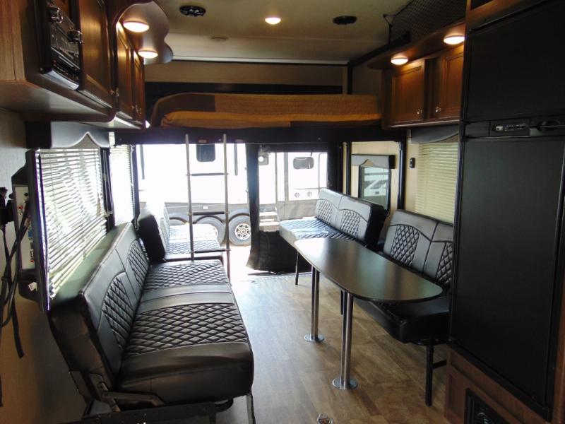 Load your toys and gear easily with the rear ramp spring assist door. Once inside the cargo area you will find dual rollover sofas with a HappiJac power bunk above that stores neatly up at the ceiling when not in use. This allows for the whole gang to sit and relax and catch their breath before the next ride, plus it adds more sleeping space at night.