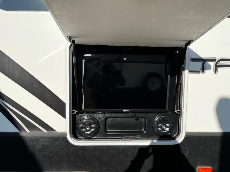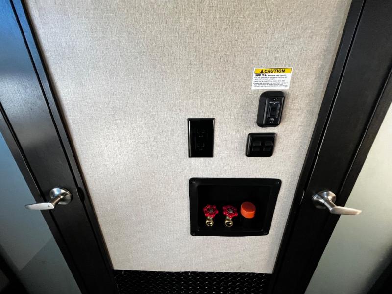 Enjoy the 18' awning for protection from the elements allowing you to spend time outside when you want. There is also an optional outside entertainment center, a ramp door patio with entry steps and awning option, and an 8' awning option that would be located off the cargo entry door. Plus you will appreciate the gasoline pump station and exterior storage compartments when all your family and friends join you.