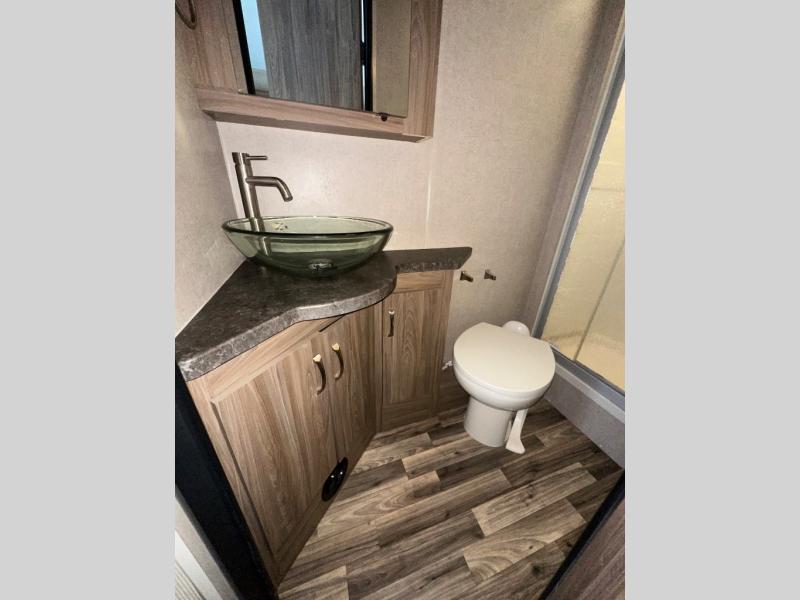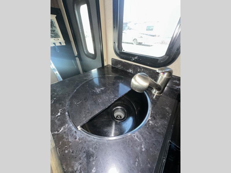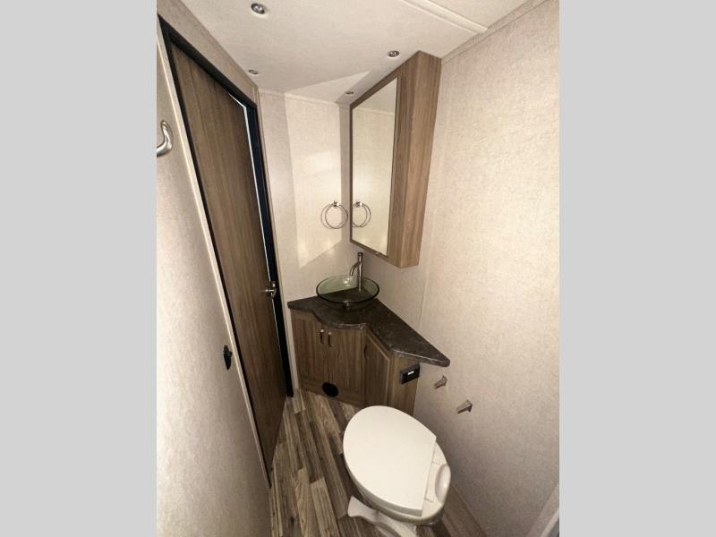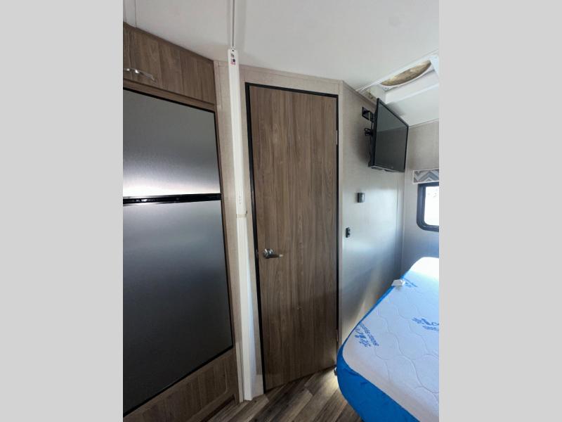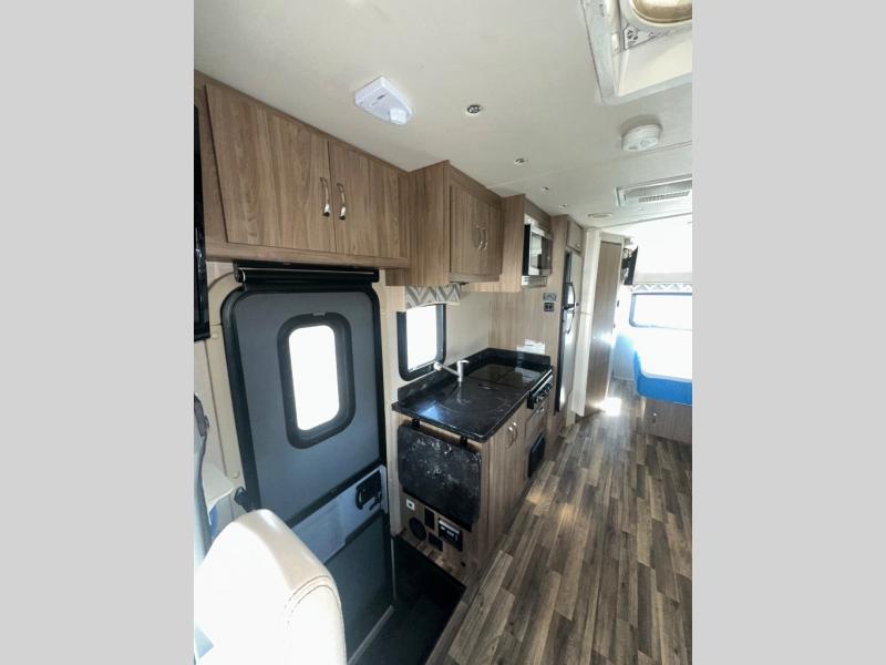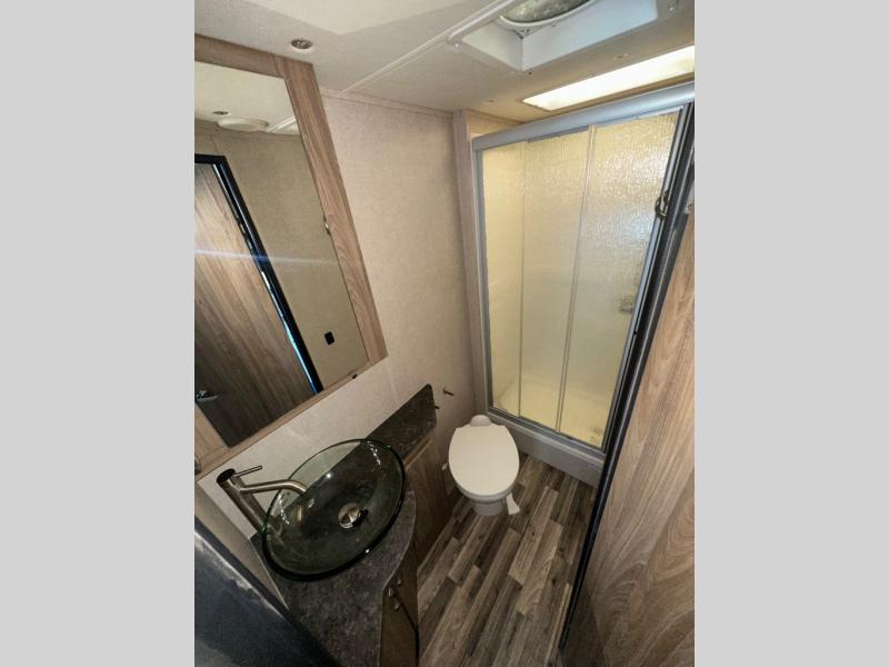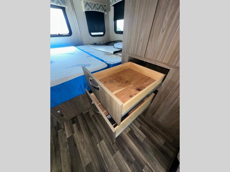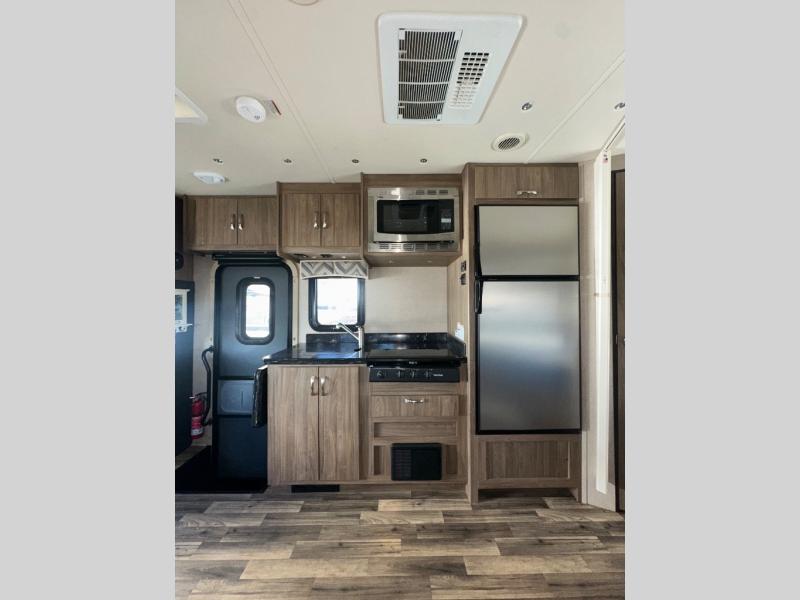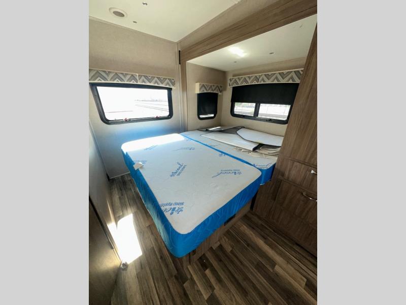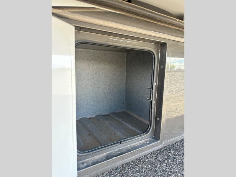 INTERIOR PHOTOS COMING SOON!Step inside just behind the front passenger seat and find an overhead cabinet above the door. Above the cab you will find a 32" LED TV as well as overhead cabinets. There is a full wall slide out along the driver's side which creates a nice open feel inside. The slide contains a booth dinette, pantry, wardrobe, and queen size bed.