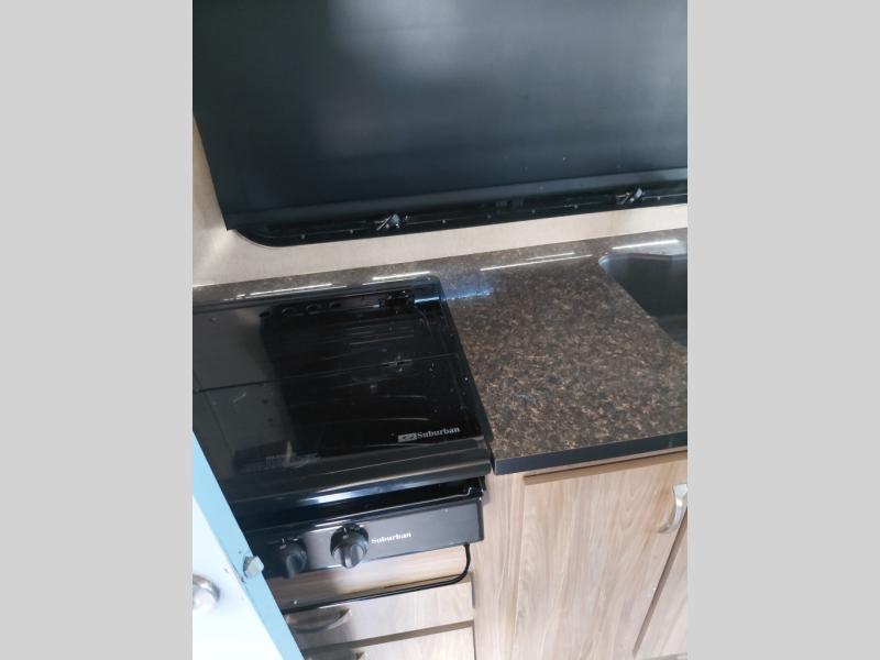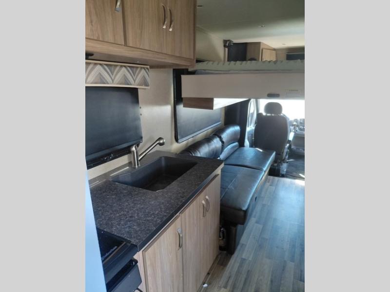 Just behind the driver's seat you will find a sofa that features two sets of seat belts to keep your rear travelers safe. Across from the sofa there is a dinette where you can enjoy your meals. When it is time to sleep you can lower the drop down bed above the sofa and the dinette to create more sleeping space for all.