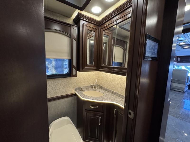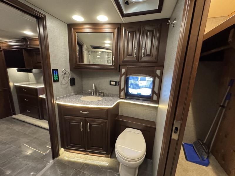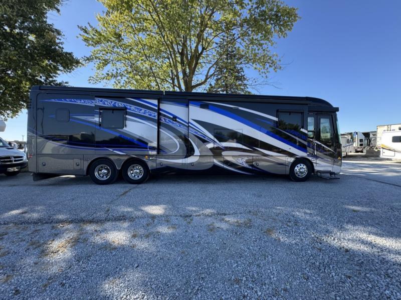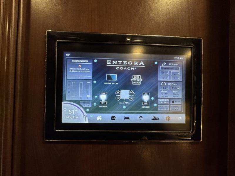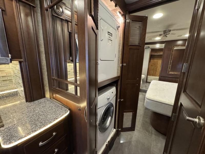 If you are looking for a rear master bathroom for yourself, a half bath for guests, and a washer and dryer to use during long trips, plus quad slides for more interior space then look no further than this Anthem 42RBQ diesel motor home by Entegra Coach with only 786 hours on the Generator!