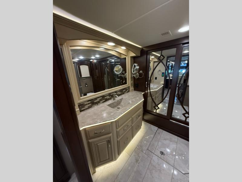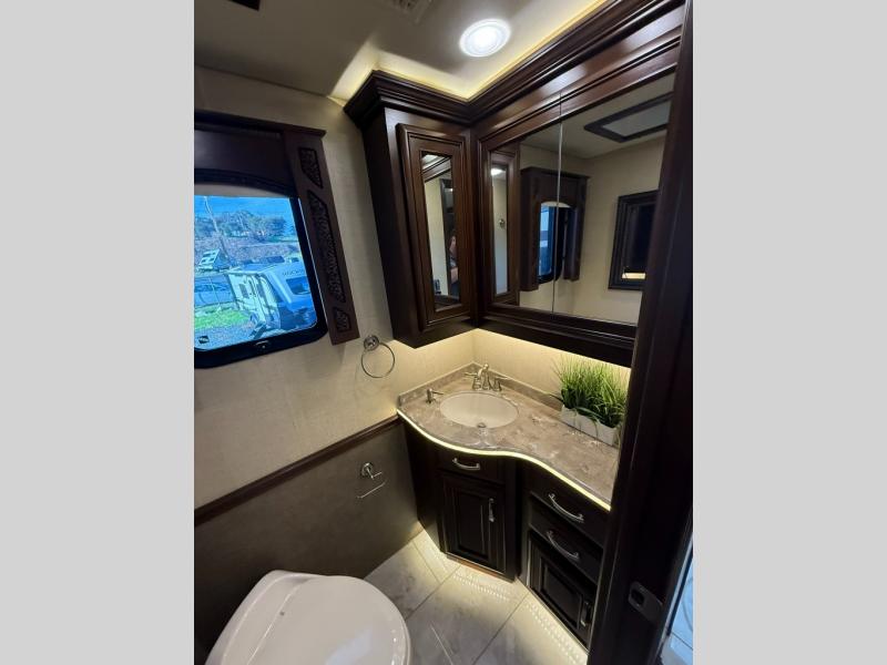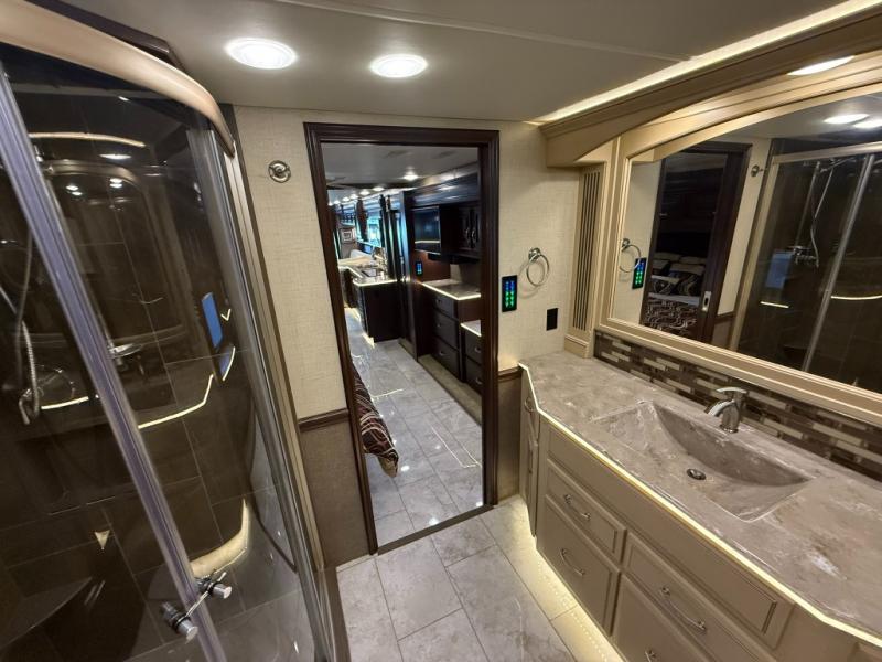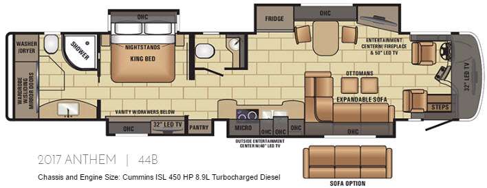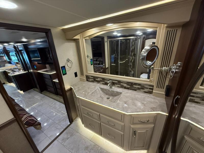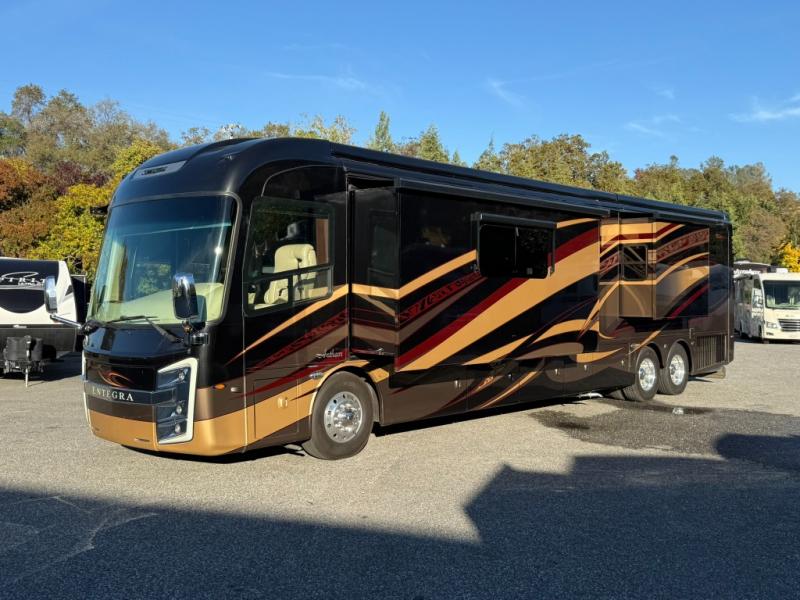 It's time to enjoy the comforts of home in this quad slide Entegra Coach Anthem 44B diesel motor home. From the one and half baths to the entertainment center with fireplace your standard of living will not change on the open road.