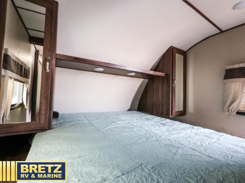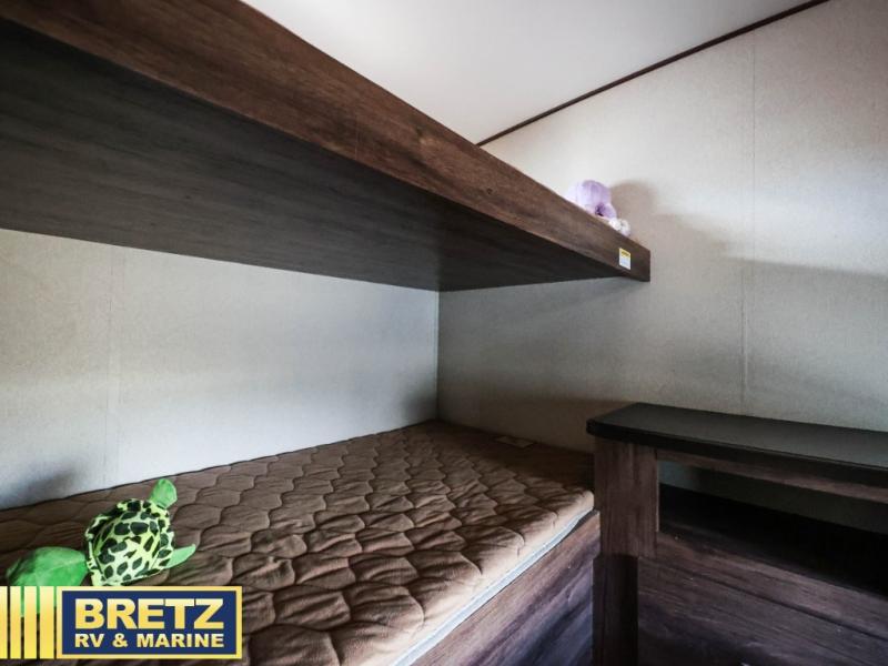 Your kids will sure love the additional space that the bunk house has to offer. Inside the bunk house, along one side there is a dinette with a bunk above the dinette. On the opposite side of the room you will find plenty of storage, and along the rear wall there is a wardrobe.