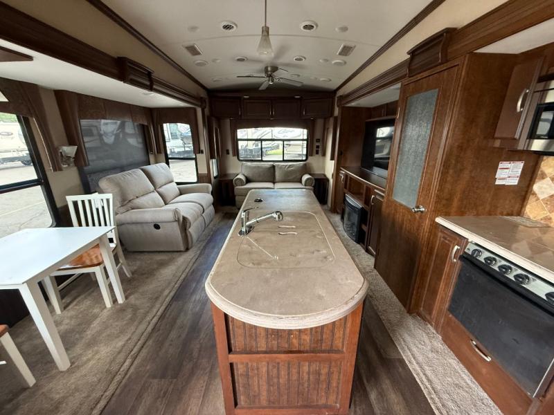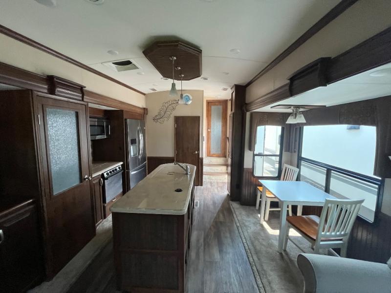 If you are looking for a fifth wheel with some great features such as a kitchen island, rear living area, and a front bath then the Cardinal 3875FB by Forest River will answer your call.