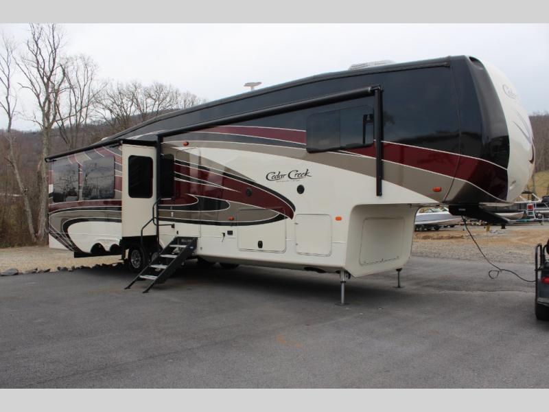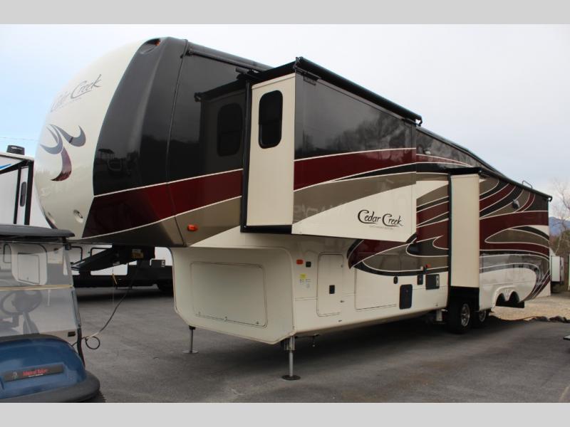 Nice 5th Wheel!This triple slide out Cedar Creek Hathaway Edition 36CK2 fifth wheel by Forest River offers spacious living accommodations and all the comforts of home.
