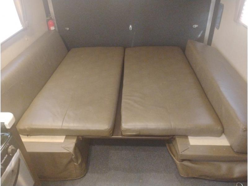In the cargo area there are two fold down sofas and a dinette table. You can enjoy your meals at the sofas during the day, and at night they easily convert into additional sleeping space.
