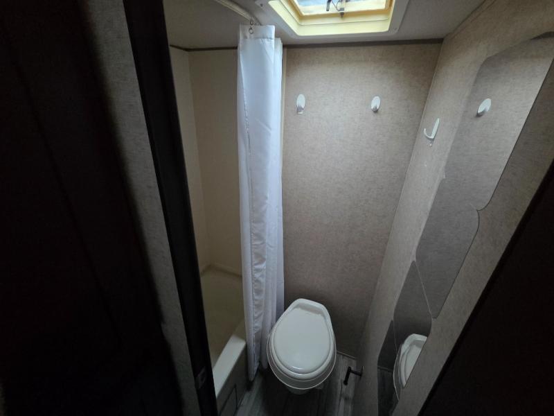 The very back left corner features a private tub/shower and toilet area. Right next door there is a set of bunks that the kids will enjoy sleeping on, plus so much more!