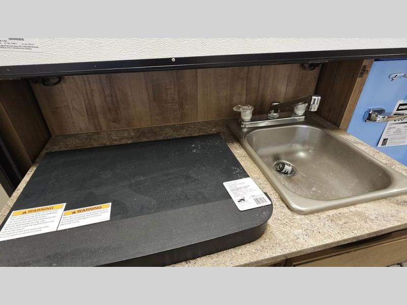 Enjoy your time camping in the Flagstaff Micro Lite 25FKS travel trailer by Forest River. This model features a single slide out, and a front kitchen, as well as an outside kitchen which makes fixing your meals outside a breeze.