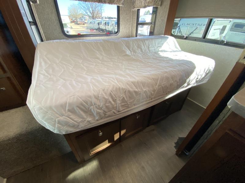 Above the cab there is a 54" x 80" bunk mat, or you can choose an optional entertainment center. You will also find storage above the cab, and more!