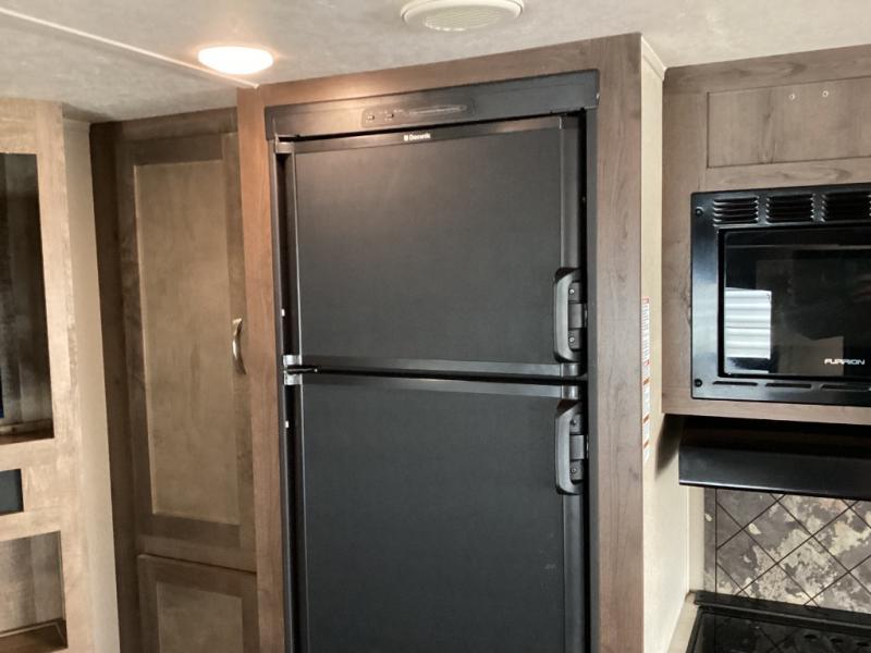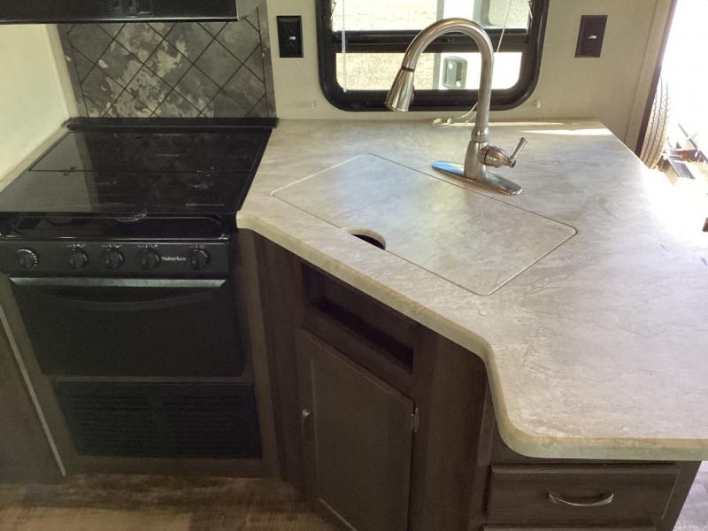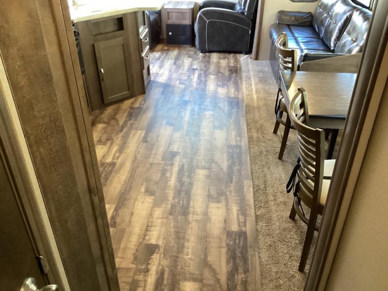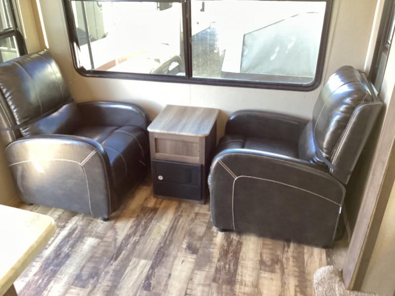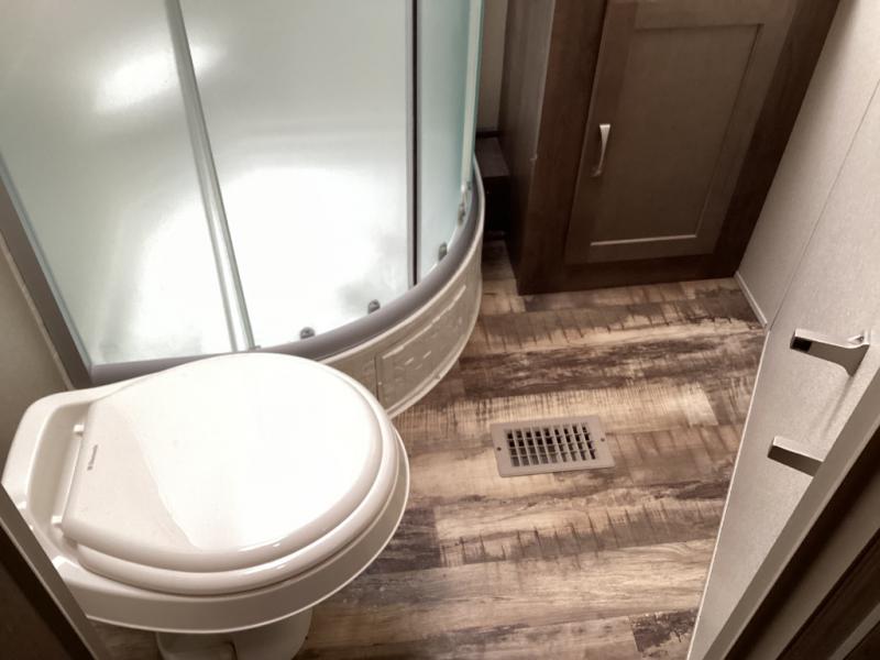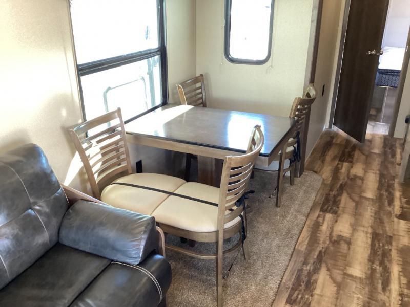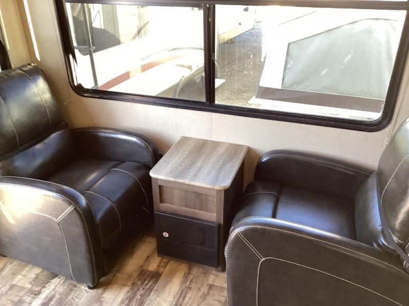 A smart floorplan with queen bed up front, generous seating and dinette, and room to stash gear without feeling cluttered.