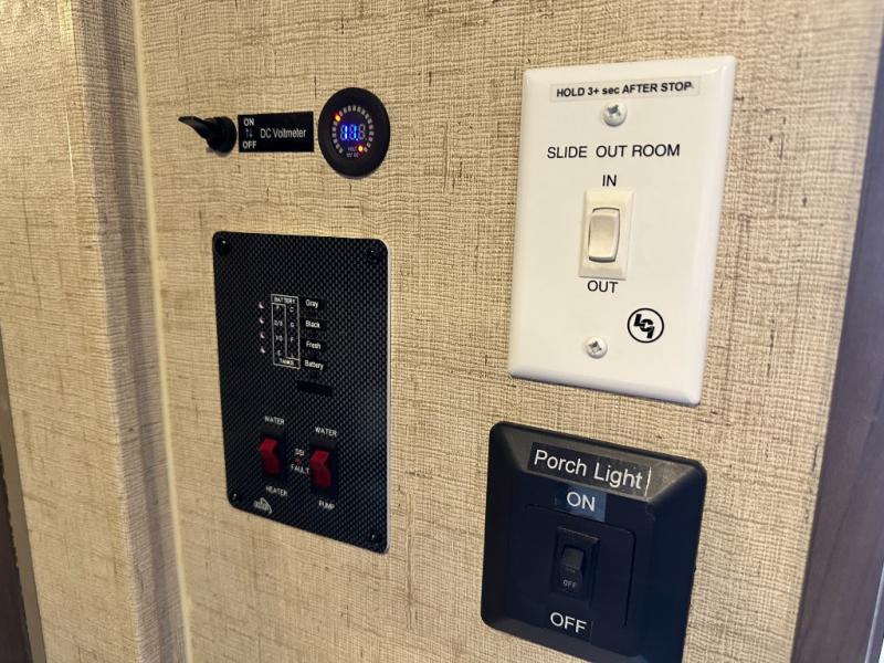 As you step inside you will find a pantry to your immediate right for storage needs, and to your left there is a two burner cook-top, a single sink, and plenty of counter space. You will also find ample storage with lower cupboards and drawers. The refrigerator is straight in through the entry door within the slide out that also features a 75" x 45" u-shaped dinette.