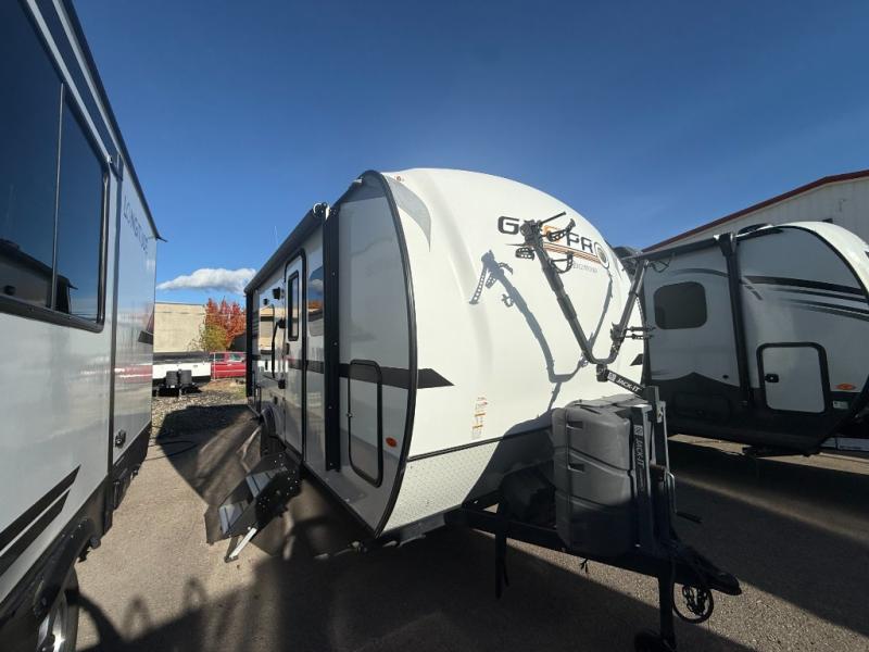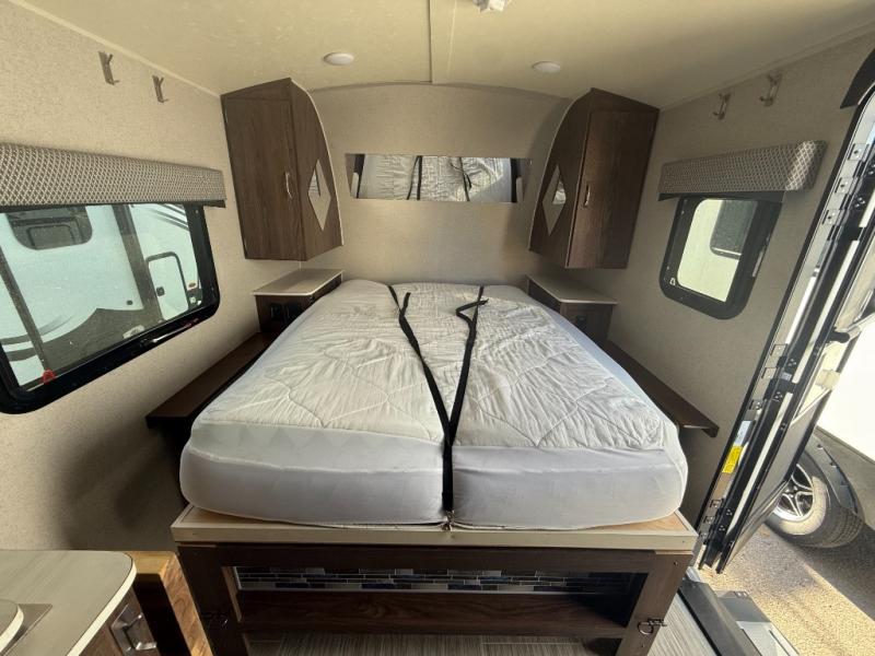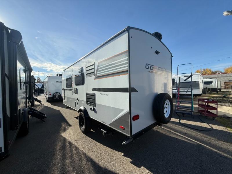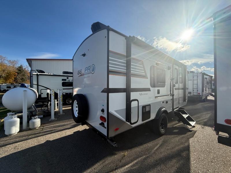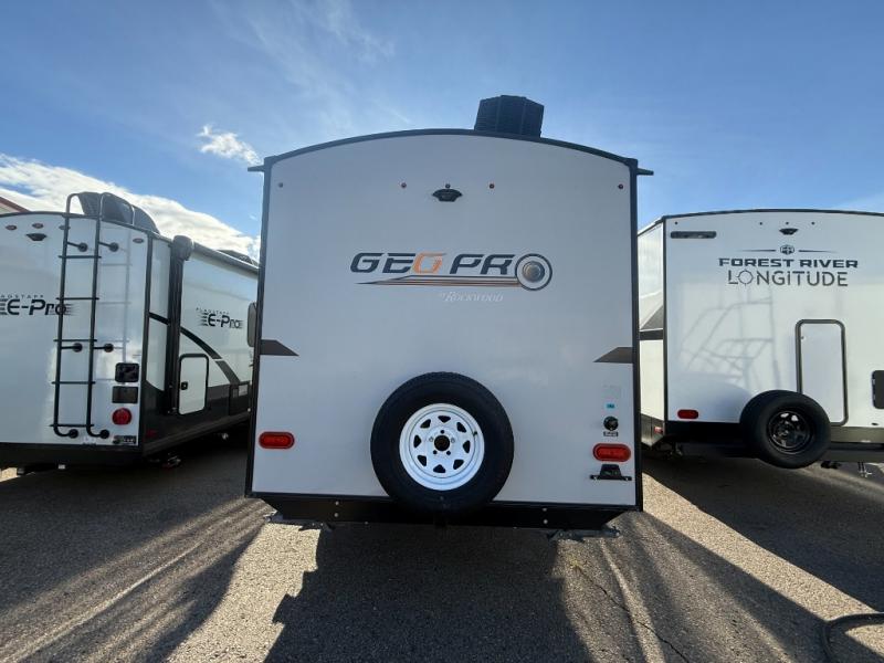 Ready, set, camp! For the camping enthusiast the Rockwood Geo Pro 19FD is ideal for you! This model features a front Murphy bed which easily tucks away during the day, and helps to add more floor space.