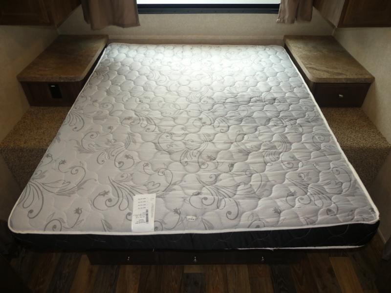 In the front, you can sleep on a queen bed with dual wardrobes and nightstands.