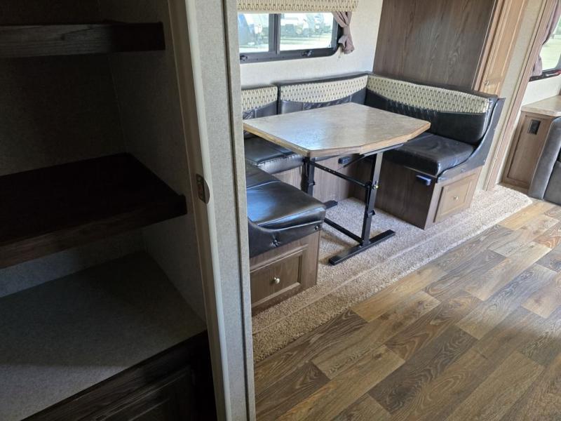You will love how open this model feels thanks to the slide out. Located within the slide out there is an 85" u-dinette plus a third wardrobe.