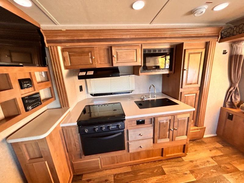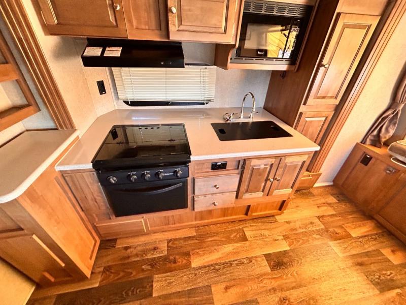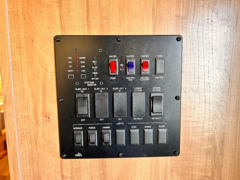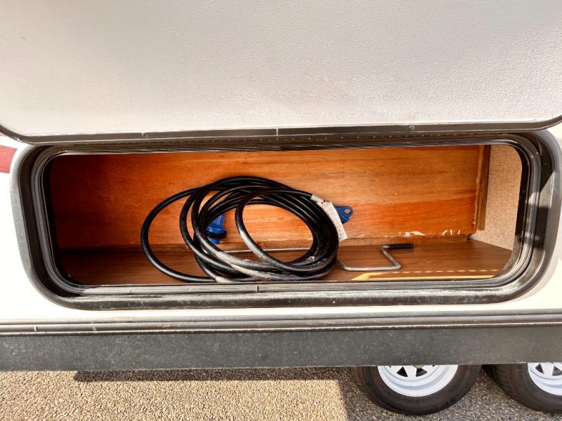 An awning and outside refrigerator are included along with space for an optional gas grill. You will find exterior storage in the rear for your outdoor gear.
