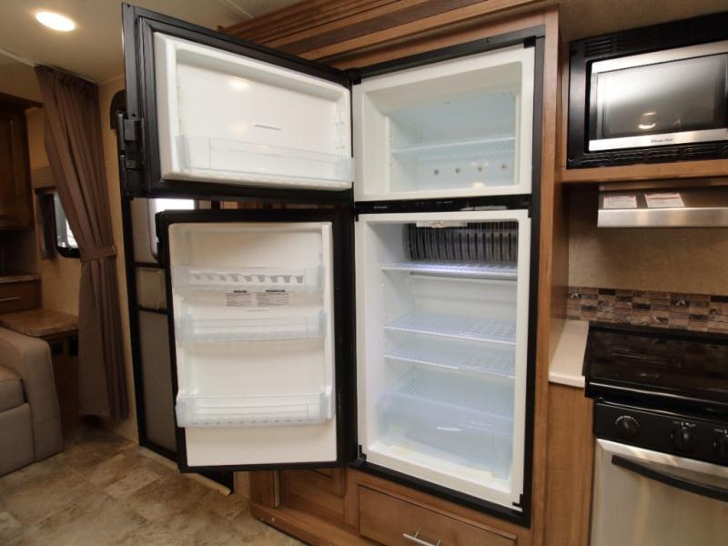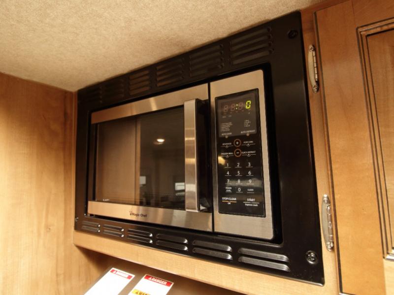 The opposite slide includes a pantry, refrigerator, three-burner range, microwave, and extra counter space for meal prep.