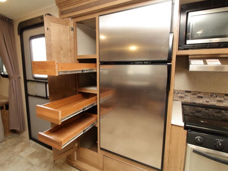 There’s plenty of exterior storage on both sides of the trailer for gear, chairs, and camping accessories. Grill out with ease using the exterior gas grill, included for outdoor cooking fun.