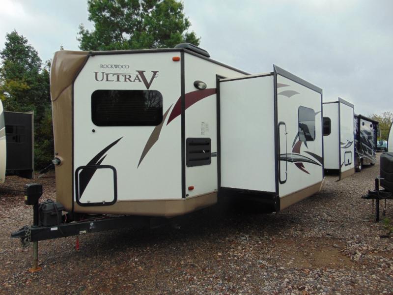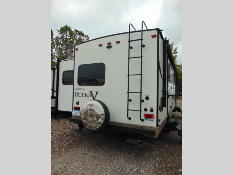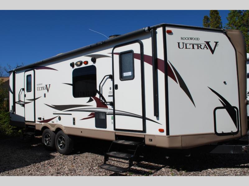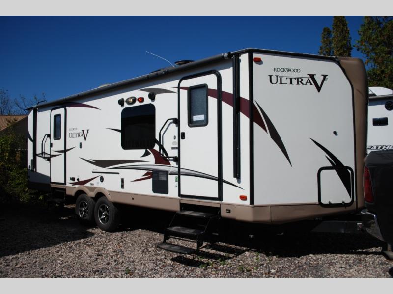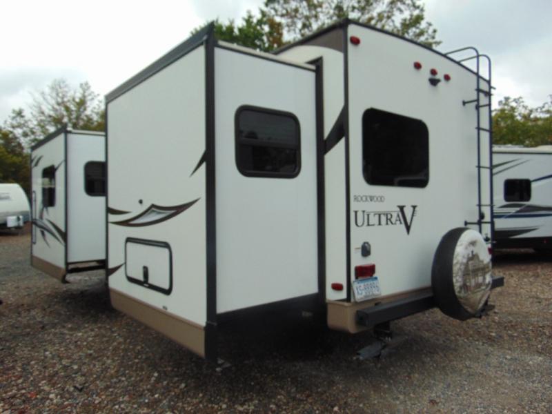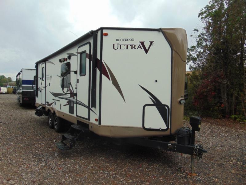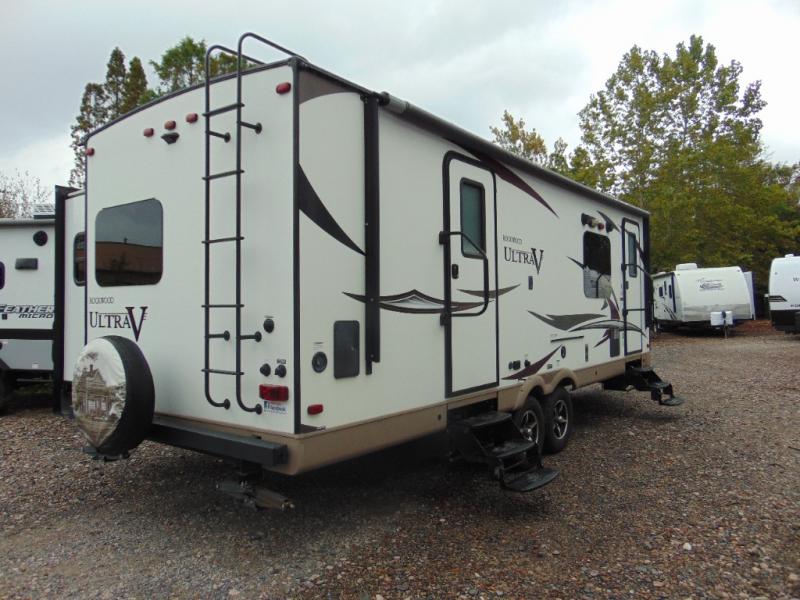 This v-nose Rockwood Ultra V 2618VS travel trailer by Forest River features a front kitchen area, dual entry, and two slide outs, plus more!