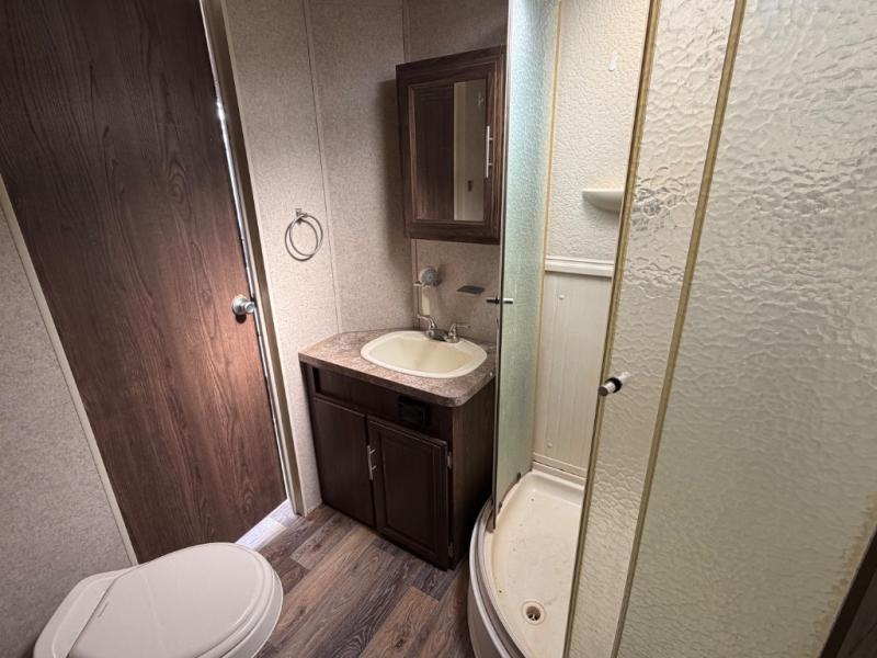 Step inside and notice the space saving sliding door to the rear bathroom which is is conveniently located to the entry door. There will be no running through the entire unit to get there with this layout. Inside you will find a large shower, toilet, and vanity with sink. There is also a linen cabinet for your towels and toiletries.