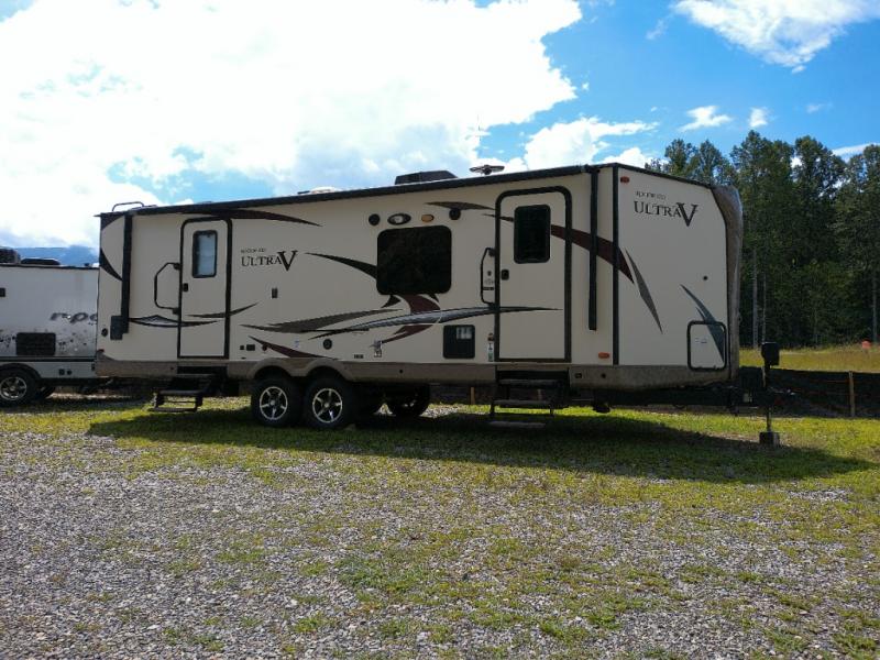 This v-nose Rockwood Ultra V 2618VS travel trailer by Forest River features a front kitchen area, dual entry, and two slide outs, plus more!