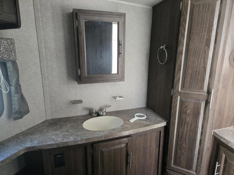 Outside you can choose to add an optional rear ladder, and if you enjoy grilling then you will love the gas grill! The awning helps to provide protection from the elements. There are many features and options to make this trailer your personal home away from home.