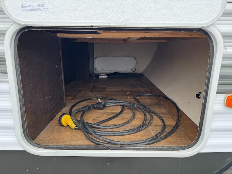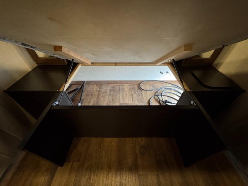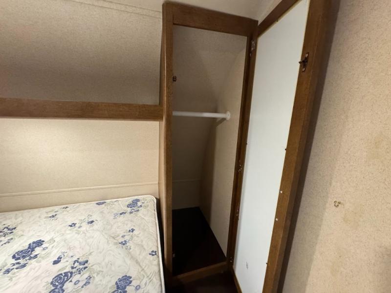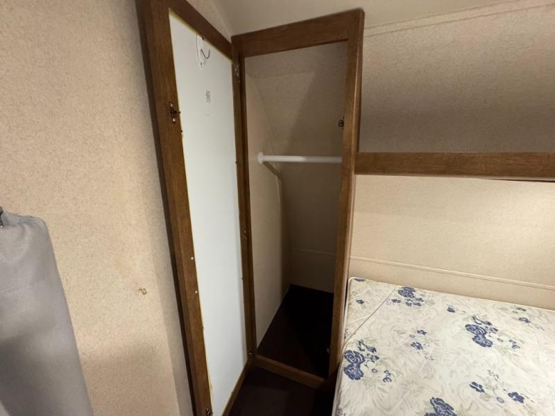 In the front bedroom you will find a door which closes off the room from the rest of the trailer. There is also a queen bed, two wardrobes, plus a shelf.