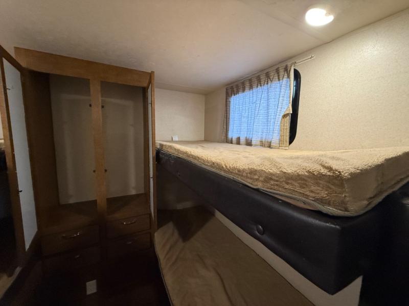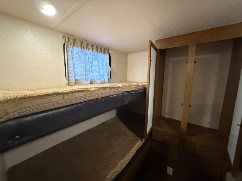 Located in the rear your kids will enjoy their own space with the bunk house. There are two sets of bunk beds and a wardrobe.
