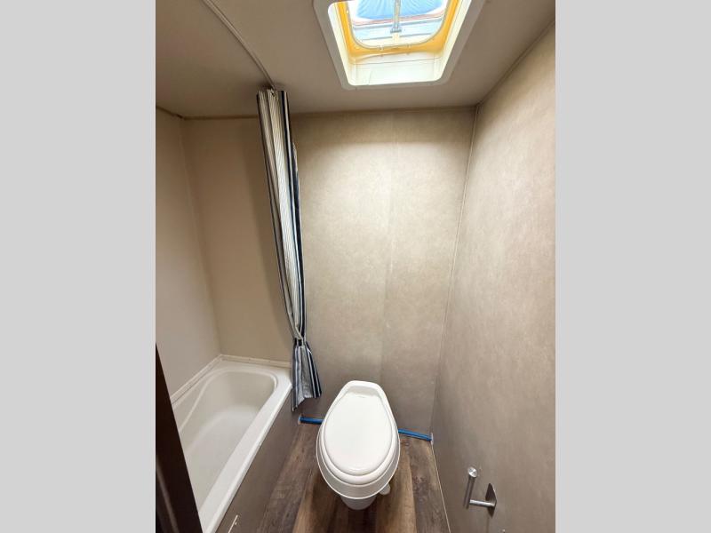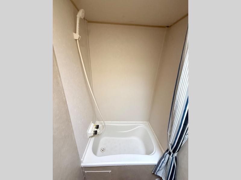 In the rear bathroom you will find a tub/shower and a toilet.