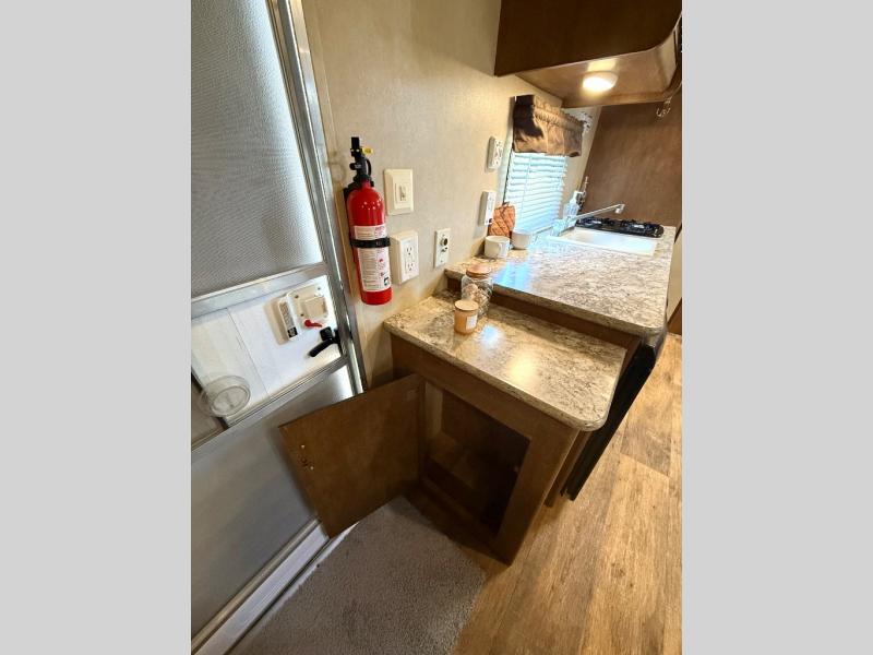 There are plenty of overhead cabinets throughout the trailer as well as exterior storage, and more.