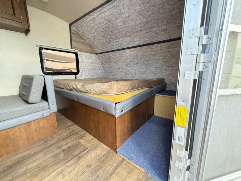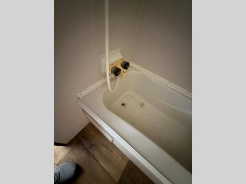 In the right rear corner of the trailer there are a set of bunk beds which your kids will surely love! The bathroom is across from the bunks making it convenient especially at night. The bath features a toilet and a shower.