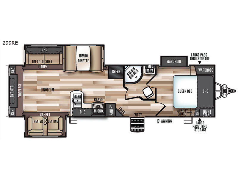 How does a rear entertainment center with fireplace, triples slides, and a dual entry bath sound in a travel trailer. This Salem Hemisphere Lite 299RE by Forest River offers those features plus much more!