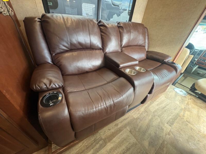 Step inside model 2400W and notice how open it feels with the entire road side extended out. Starting with a u-shaped dinette and two sets of seat belts to keep everyone safe while traveling. There are even cup holders in the table which is great for keeping your drinks safe while moving.