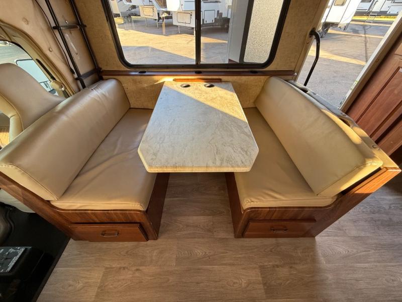 As you step inside, a dinette with overhead cabinets is located to your right. Over the cab, a standard 60" x 80" bunk with storage offers extra sleeping space. There are optional cabinets with a 42" TV or optional 32" TV with twin beds in place of the standard 60" x 80" bunk.