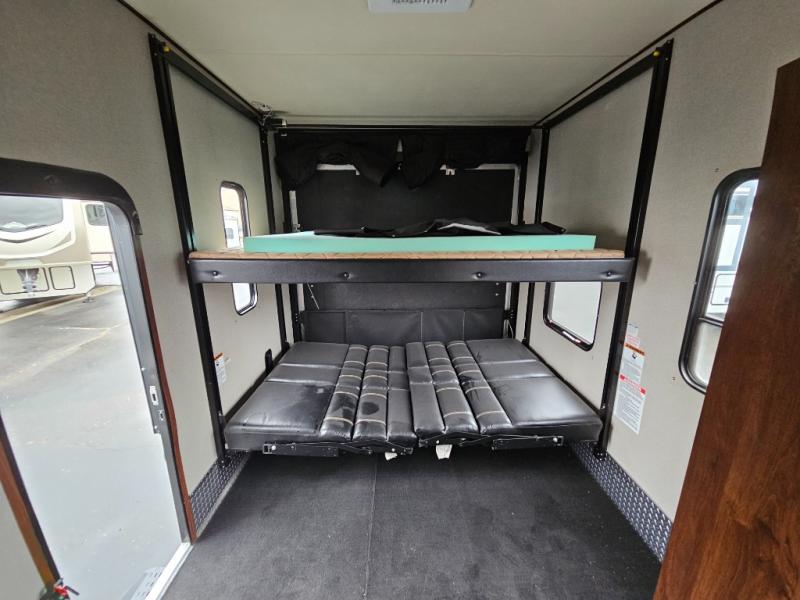 If you are looking for a toy hauler fifth wheel with plenty of space and comfort, then you have found it in the dual entry 312A laminated Vengeance by Forest River.