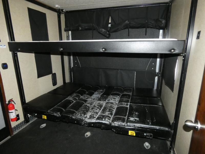 You may choose to add two rollover sofas plus a free standing table in the cargo area. There are overhead cabinets throughout the trailer for your dishes and things, and you are sure to enjoy the exterior pass through storage for your outdoor gear, plus so much more!