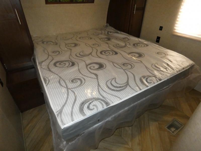 The front bedroom features a king bed, two wardrobes, and an overhead cabinet for your personal belongings.