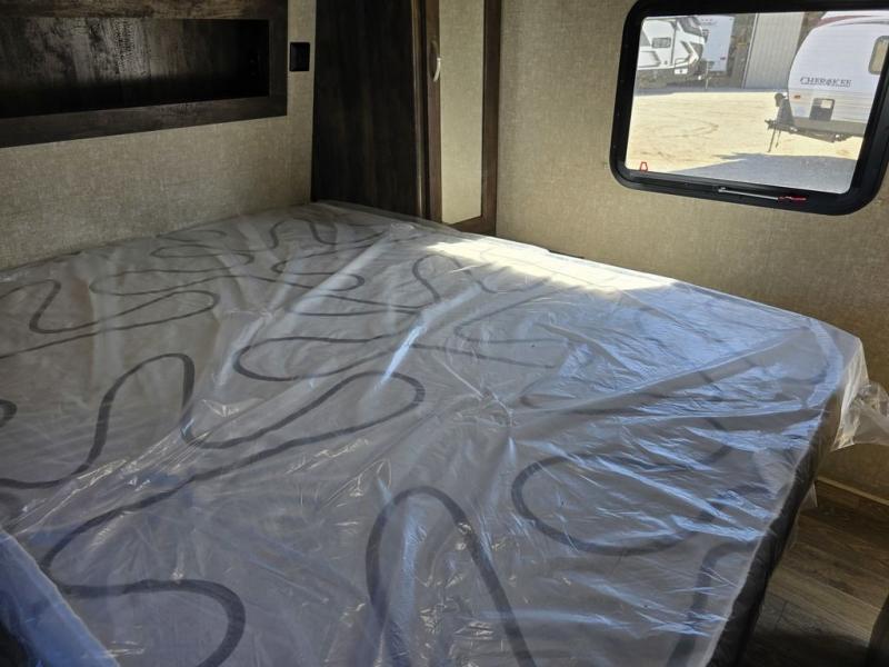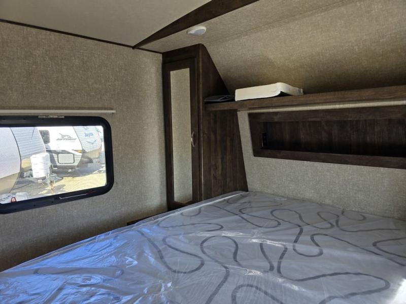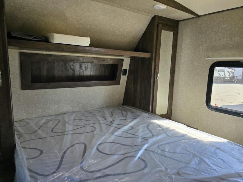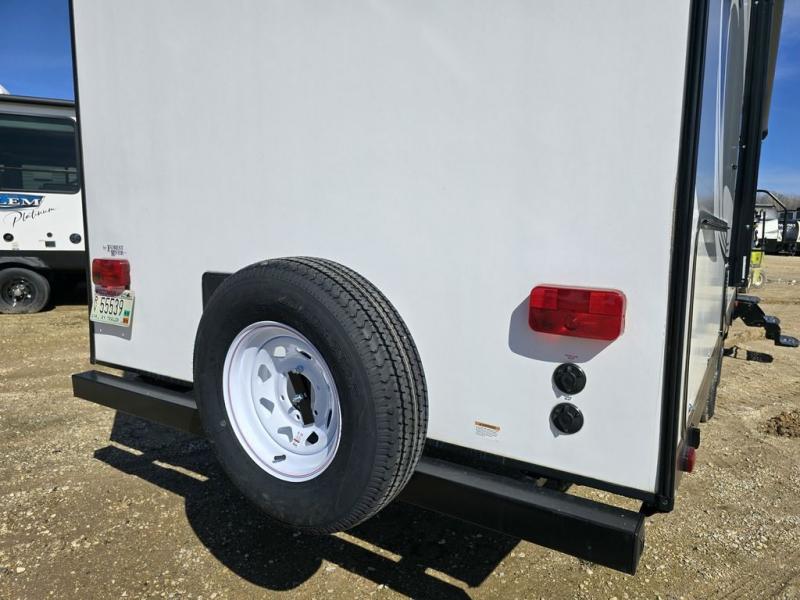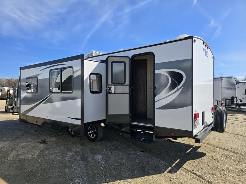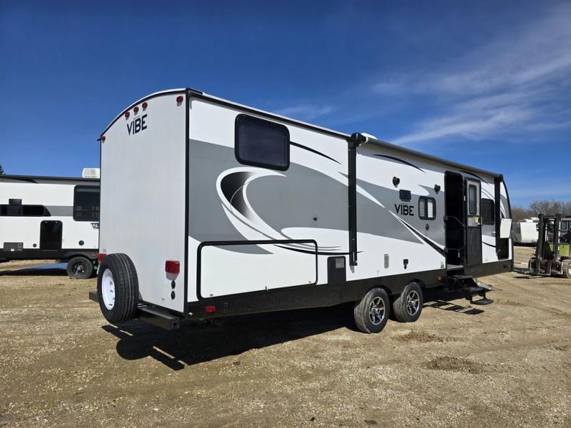 The Vibe 272BHS travel trailer by Forest River offers a single slide out, a rear bunk house, and dual entry doors.