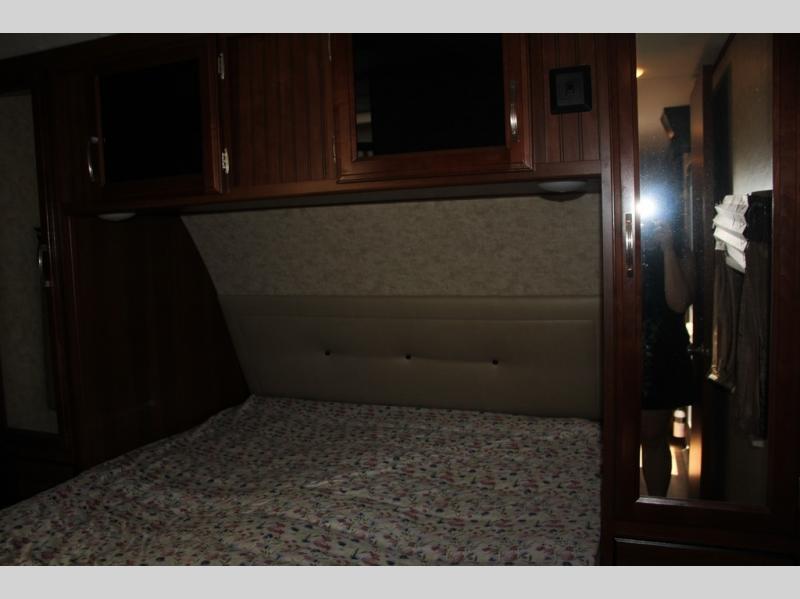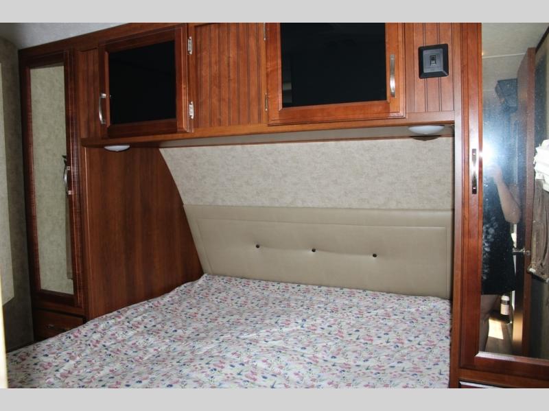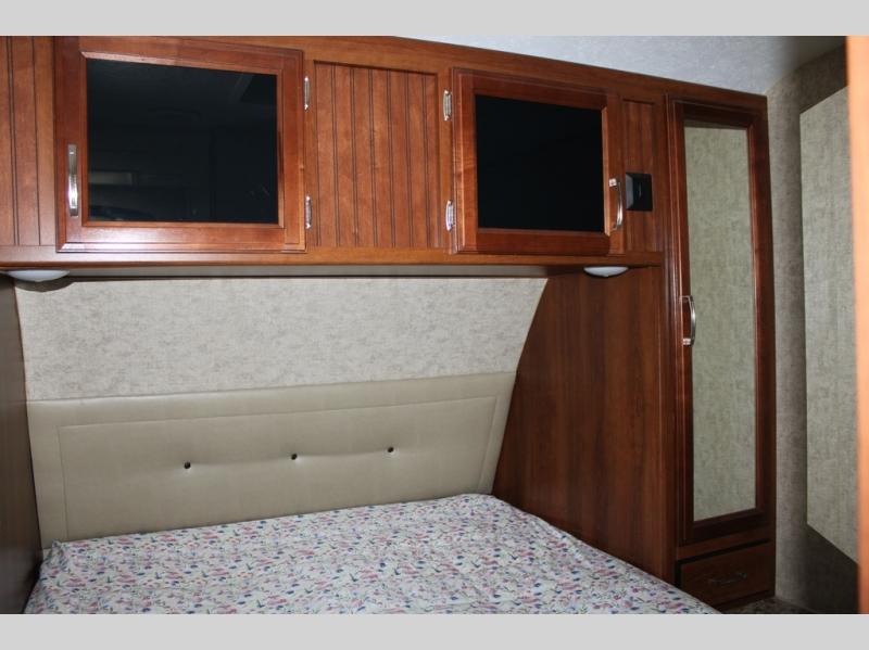 The master bedroom can also be accessed from a hallway door. Here you will enjoy a queen size bed for sleeping with storage along both sides, plus there is more storage in the overhead cabinets, along with so much more!