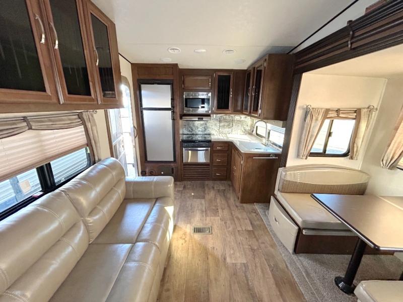 If you have been searching for a fifth wheel with a rear kitchen layout, single slide out, and a front private bedroom then step inside this Forest River Wildwood Heritage Glen Hyper-Lyte 25RKHL.