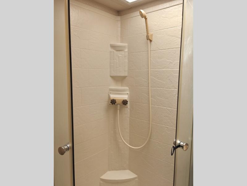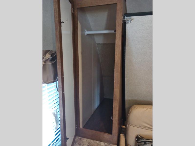 Model 232RBXL features a handy wardrobe to your immediate left as you step inside. Straight ahead a convenient location for a full bath including a toilet, radius shower, and lavatory with overhead medicine cabinet.