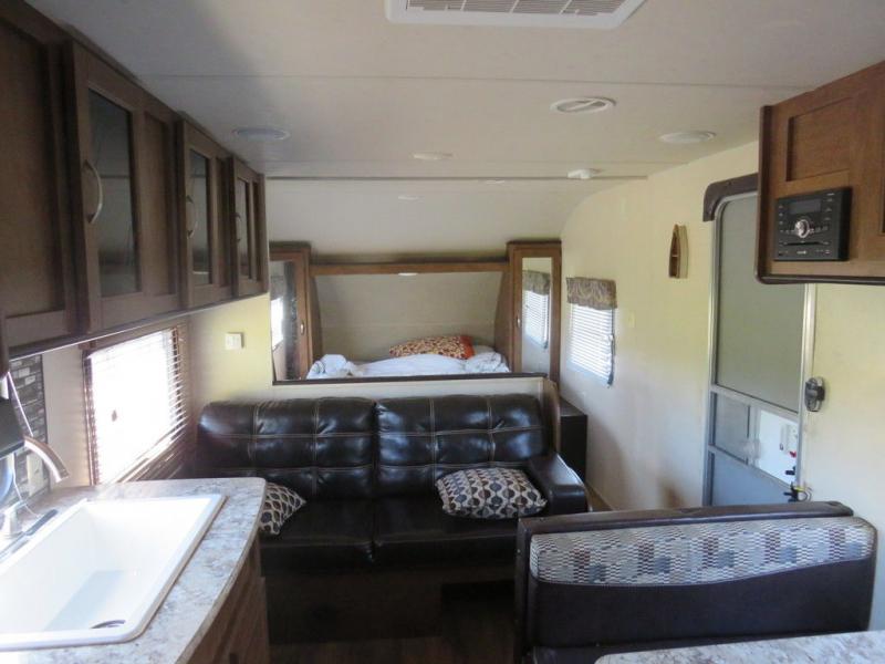 If you need a bit more sleeping space for your family, then choose the Wildwood X-Lite 261BHXL. This travel trailer features a rear set of bunk beds and a front bedroom.