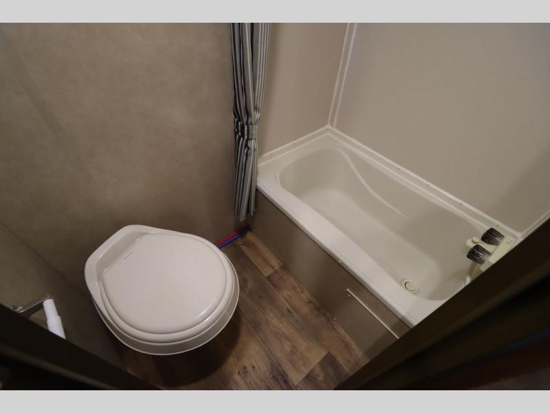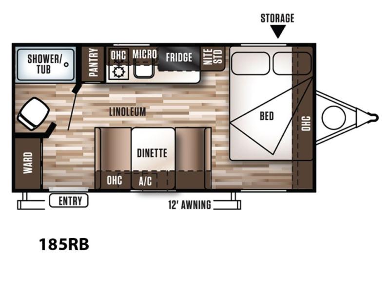 With the Wildwood X-Lite FS 185RB travel trailer by Forest River you will find that this model has a rear bath, and a front bed.